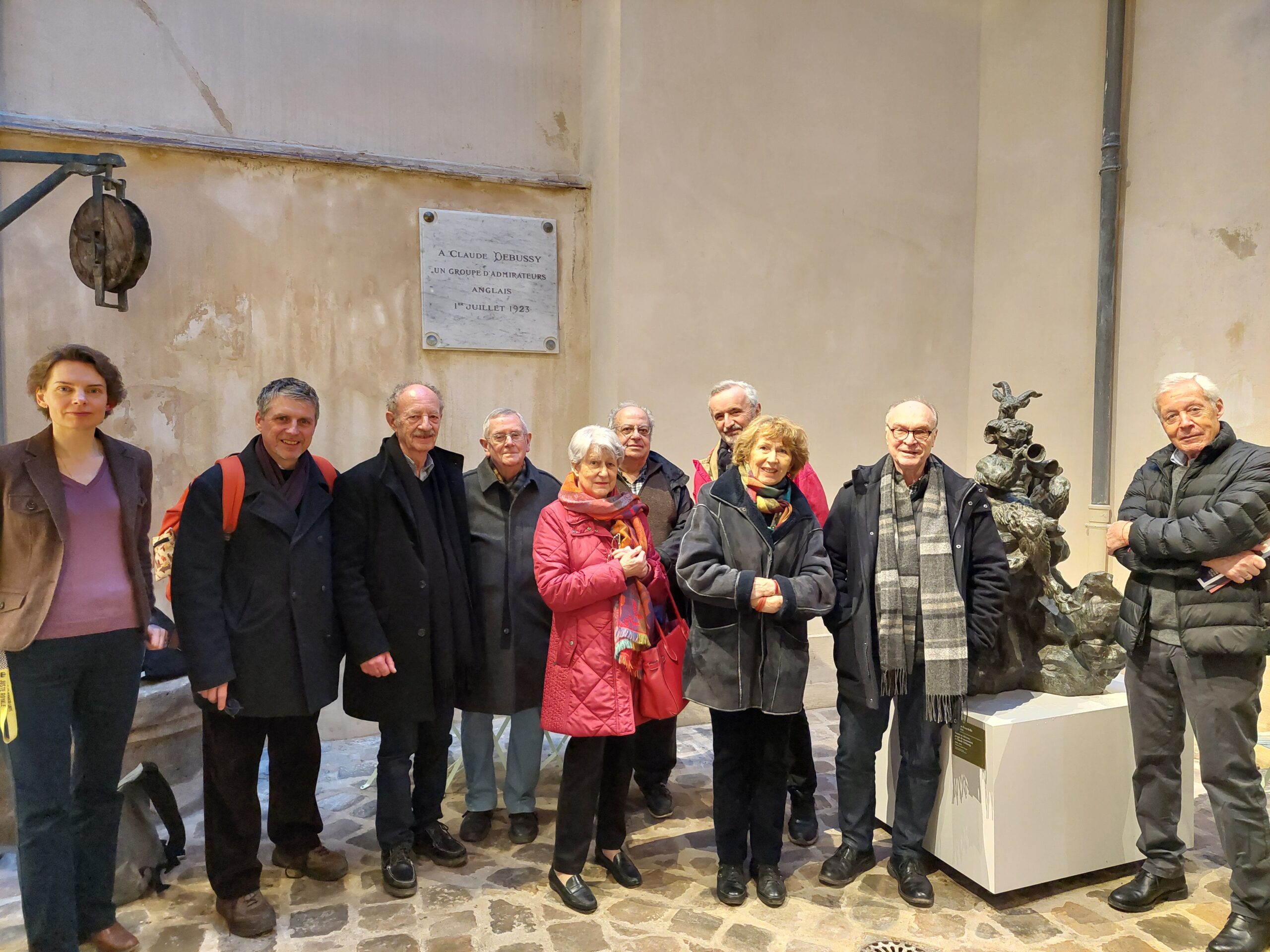 - Le groupe de membres de l’AJP dans la cour intérieure de la Maison natale de Debussy, l’une des plus anciennes de la ville (photo AJP)