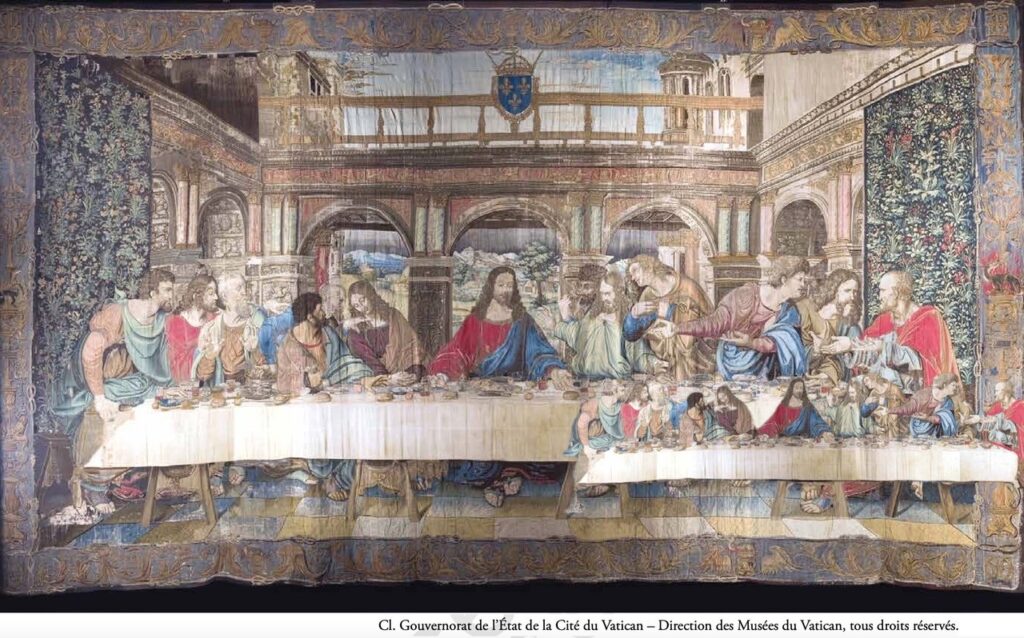 sœur Evelyne Thomas a mené une étude sur la célèbre tapisserie de la Cène, d’après Léonard de Vinci, conservée dans les musées du Vatican depuis 1533. Cette tapisserie avait donné lieu à un voyage de presse en 2019, alors qu’elle était exposée au Clos-Lucé, point de départ de l’étude d’Evelyne qui a publié un article dans le numéro 181-2 du Bulletin monumental, intitulé « Architecture et décor « français » dans la tapisserie de la Cène, d’après Léonard de Vinci ». Elle a découvert et démontré que, contrairement à ce qui était supposé, Léonard de Vinci n’avait pas pu participer aux cartons préparatoires de l’œuvre durant son séjour à Amboise, car, à son arrivée en 1516, le tissage de la tapisserie était largement commencé. L’article est désormais en accès libre ici.
