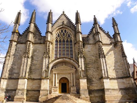 D’abord, l’église Notre-Dame : de style gothique avec une façade caractéristique des églises à pignons de Bretagne et une chaire à prêcher extérieure, une rareté. Nos accompagnateurs nous ont fait apprécier le remarquable décor intérieur enrichi au XIXe siècle, et nous reverrons cette église de nuit avec son magnifique jeu de lumières passant par les vitraux.