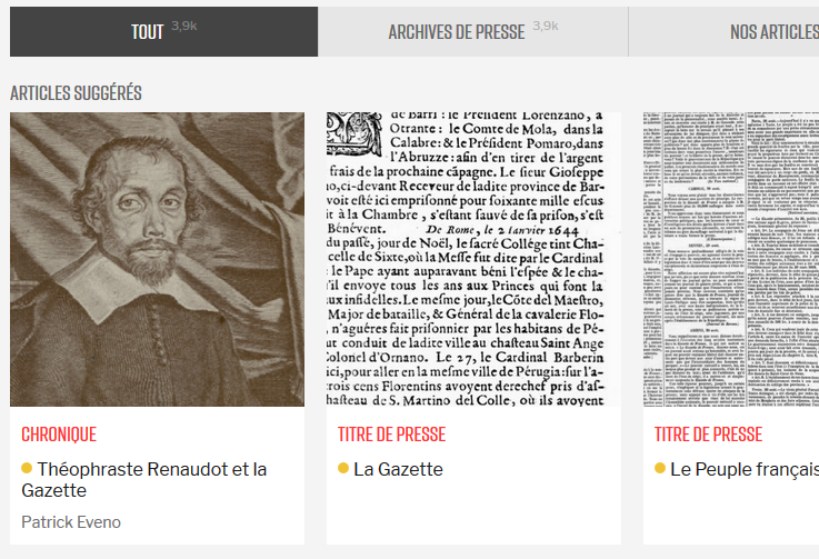 Ouvert depuis deux ans, le site est dédié à la presse française et francophone avec l’accès à 800 journaux numérisés, qui couvrent la période historique entre 1631 (première gazette de Théophraste Renaudot) et 1950 (pour des questions de droits). Il s’adresse à tous les amateurs d’histoire, les chercheurs, les élèves, les généalogistes… et pourquoi pas ? Les journalistes !