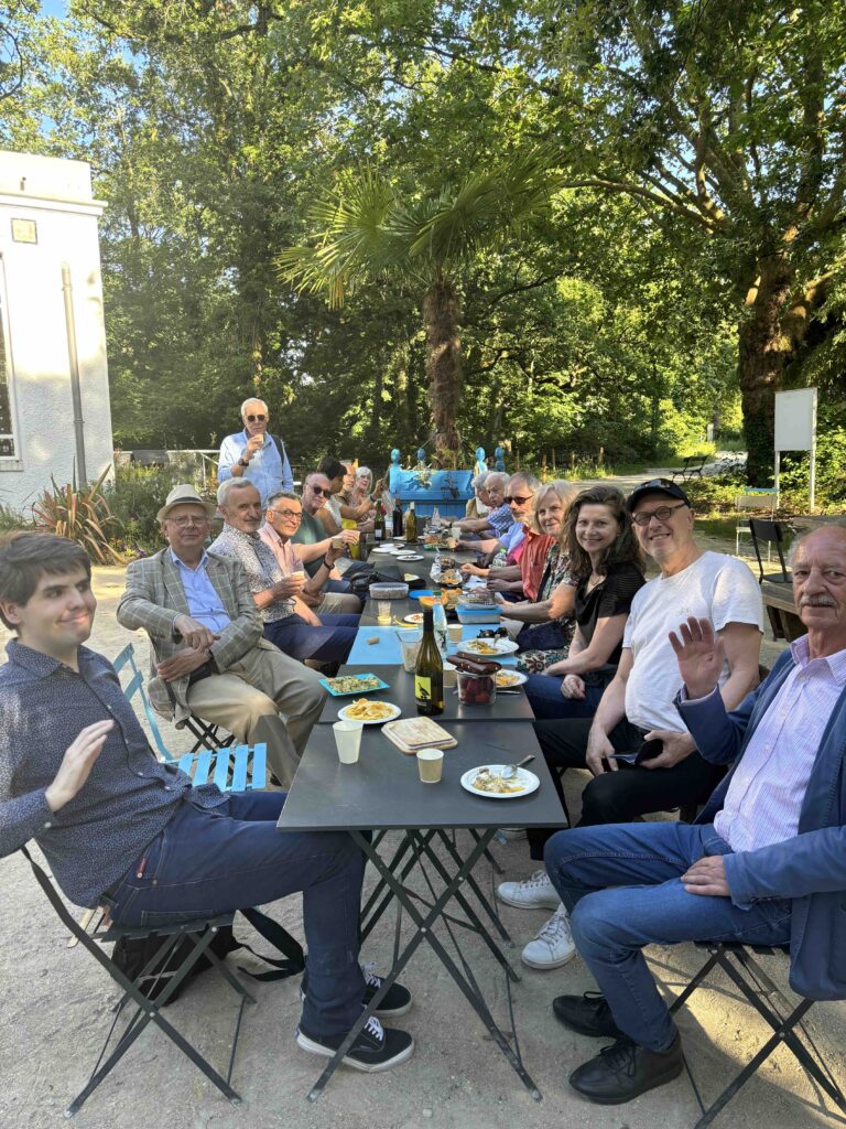 Ves 18h30, nous avons retrouvé les membres de l’AJP qui n’avaient pu se libérer plus tôt. Attablés autour d’une longue table, nous avons sorti nos victuailles et passé ensemble une belle soirée d’été