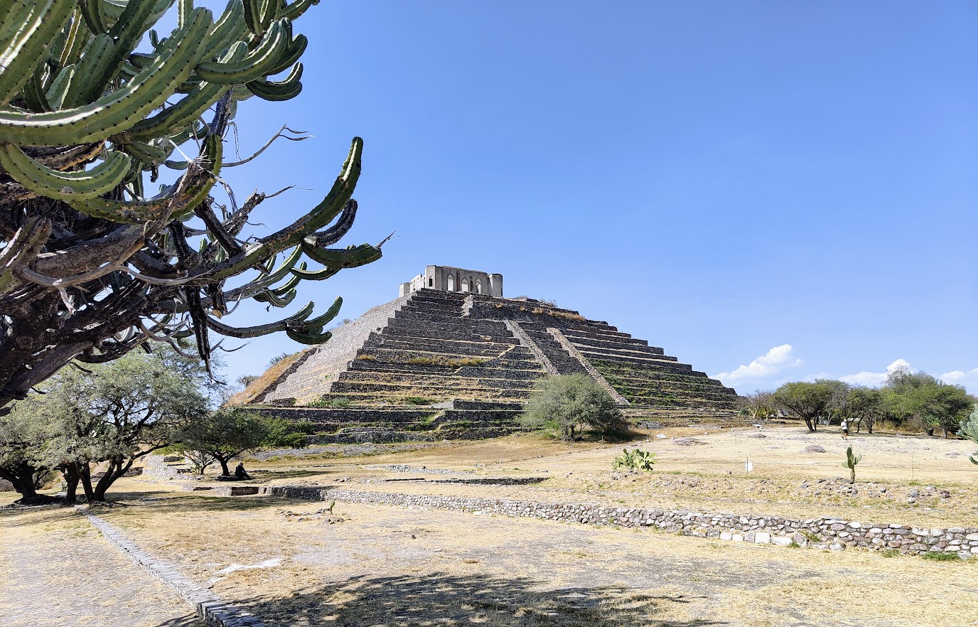 - La pyramide d’El Cerrito est l’un des trésors les plus méconnus du centre du Mexique, un ancien centre cérémoniel qui se distingue par sa conservation et par le grand bâtiment colonial qu’il possède au sommet. Photo © François Collombet