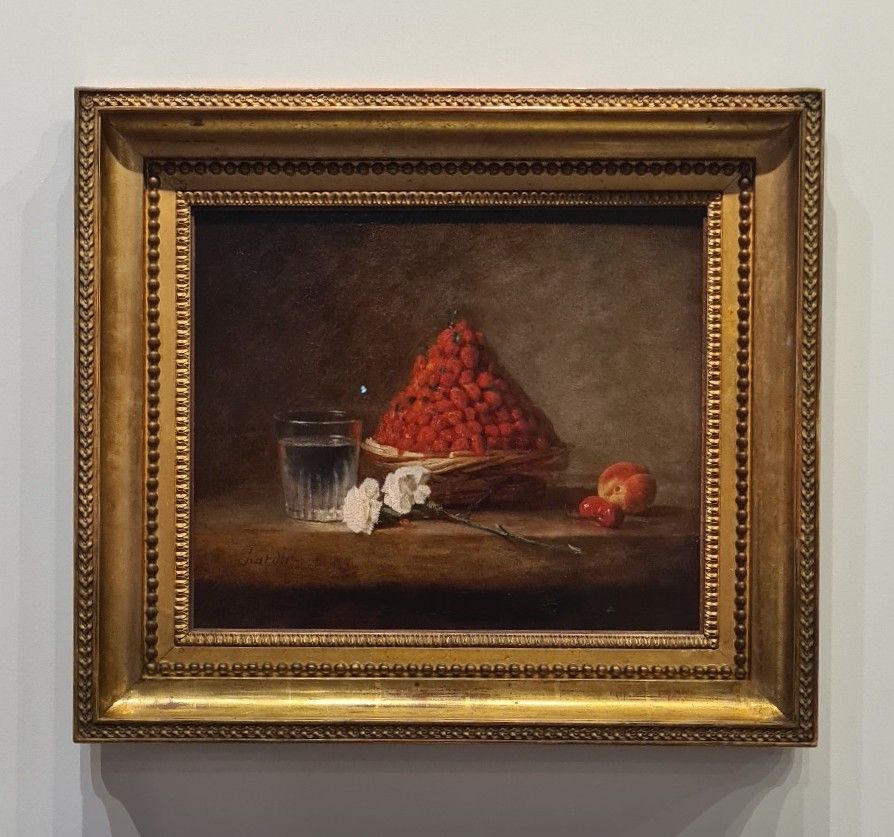 - Jean Siméon Chardin, Le Panier de fraises des bois, 1761. 38 x 46 cm.. Paris, Musée du Louvre, Département des Peintures © Le Curieux des arts Gilles Kraemer, automne 2025, Orléans.